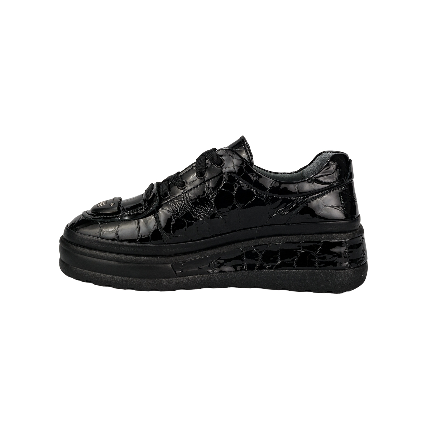 Дамски ежедневни обувки от естествен лак в черен цвят.