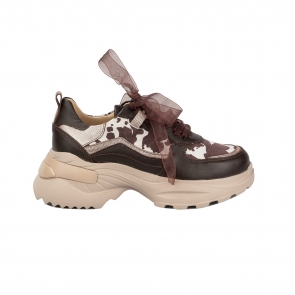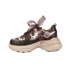 Дамски спортни обувки от естествена кожа в кафяв цвят.