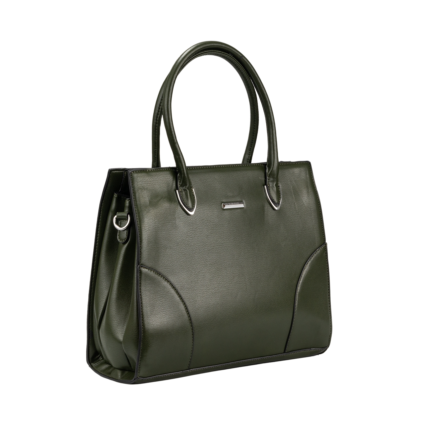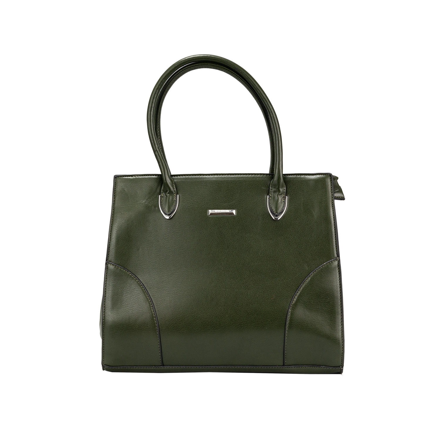 Дамска ежедневна чанта от еко кожа в тъмнозелен цвят.