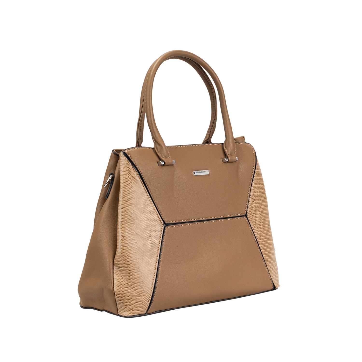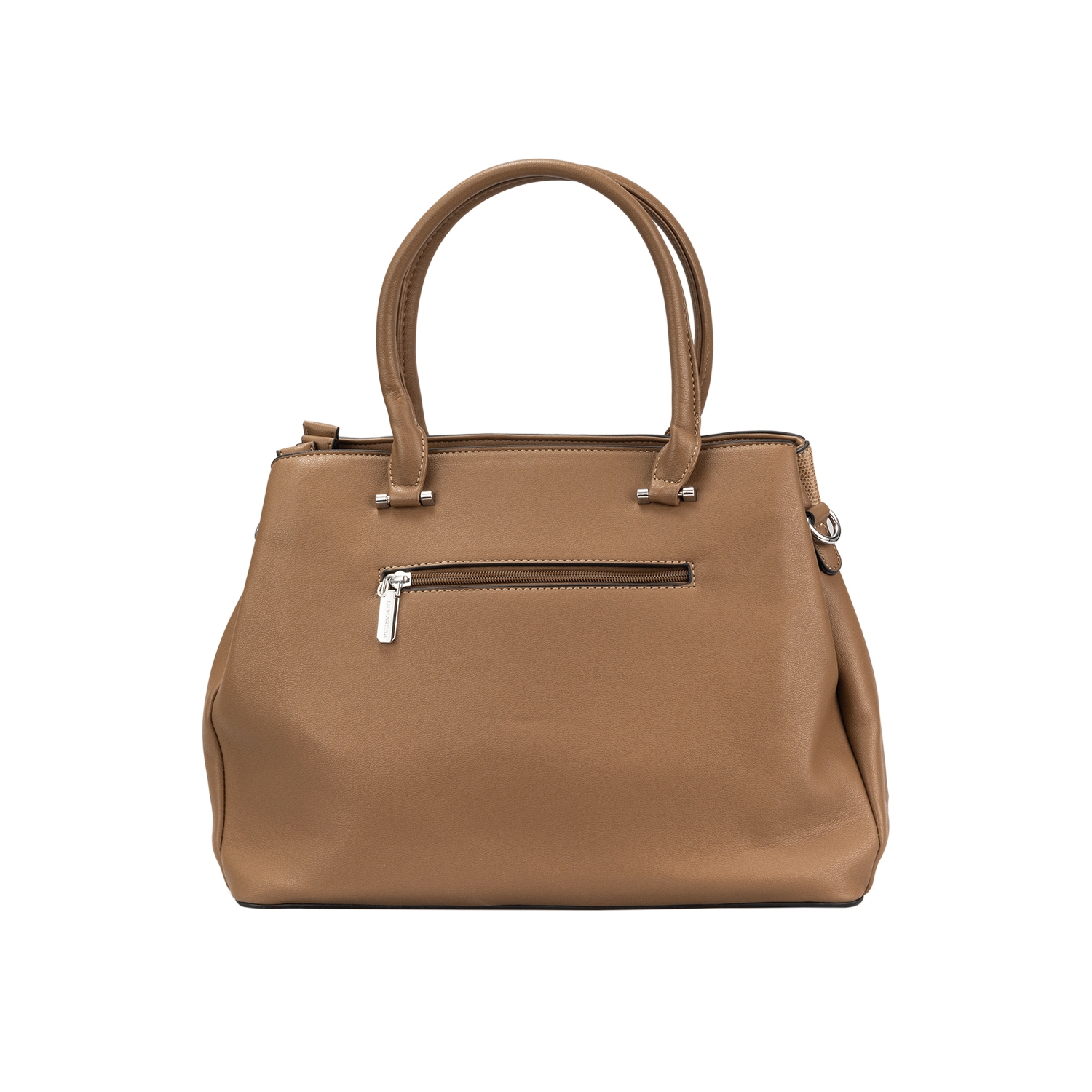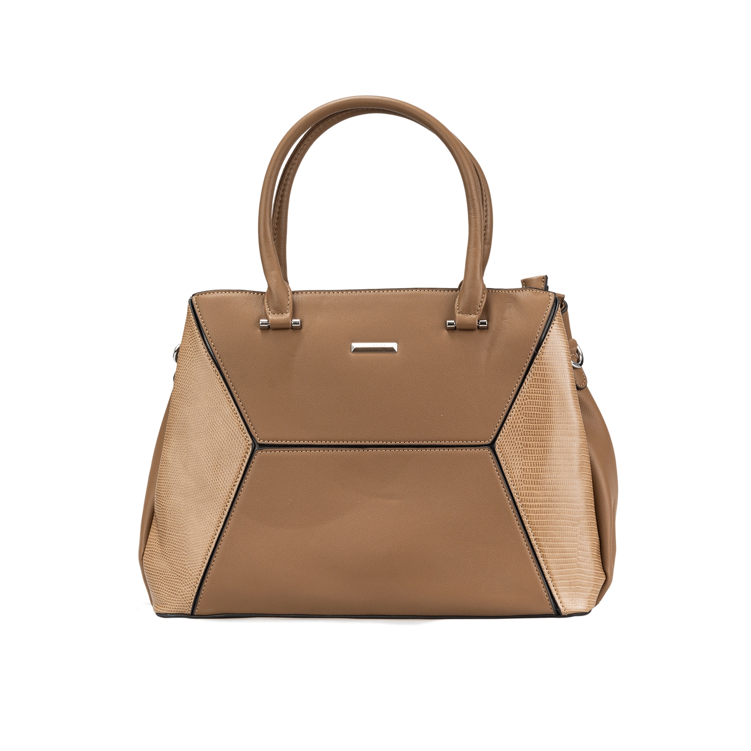 Дамска ежедневна чанта от еко кожа в тъмнобежов цвят.