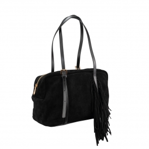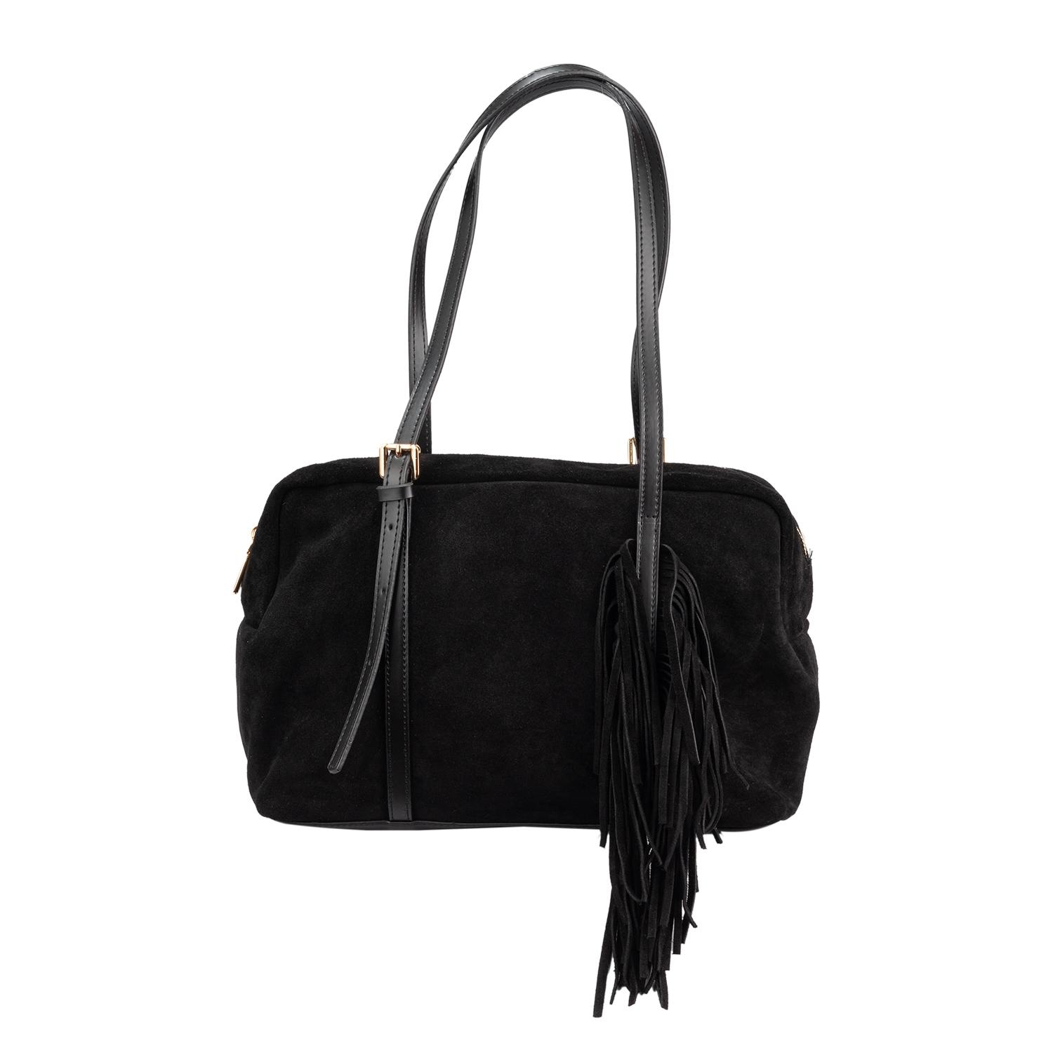 Дамска ежедневна чанта от естествен велур в черен цвят.