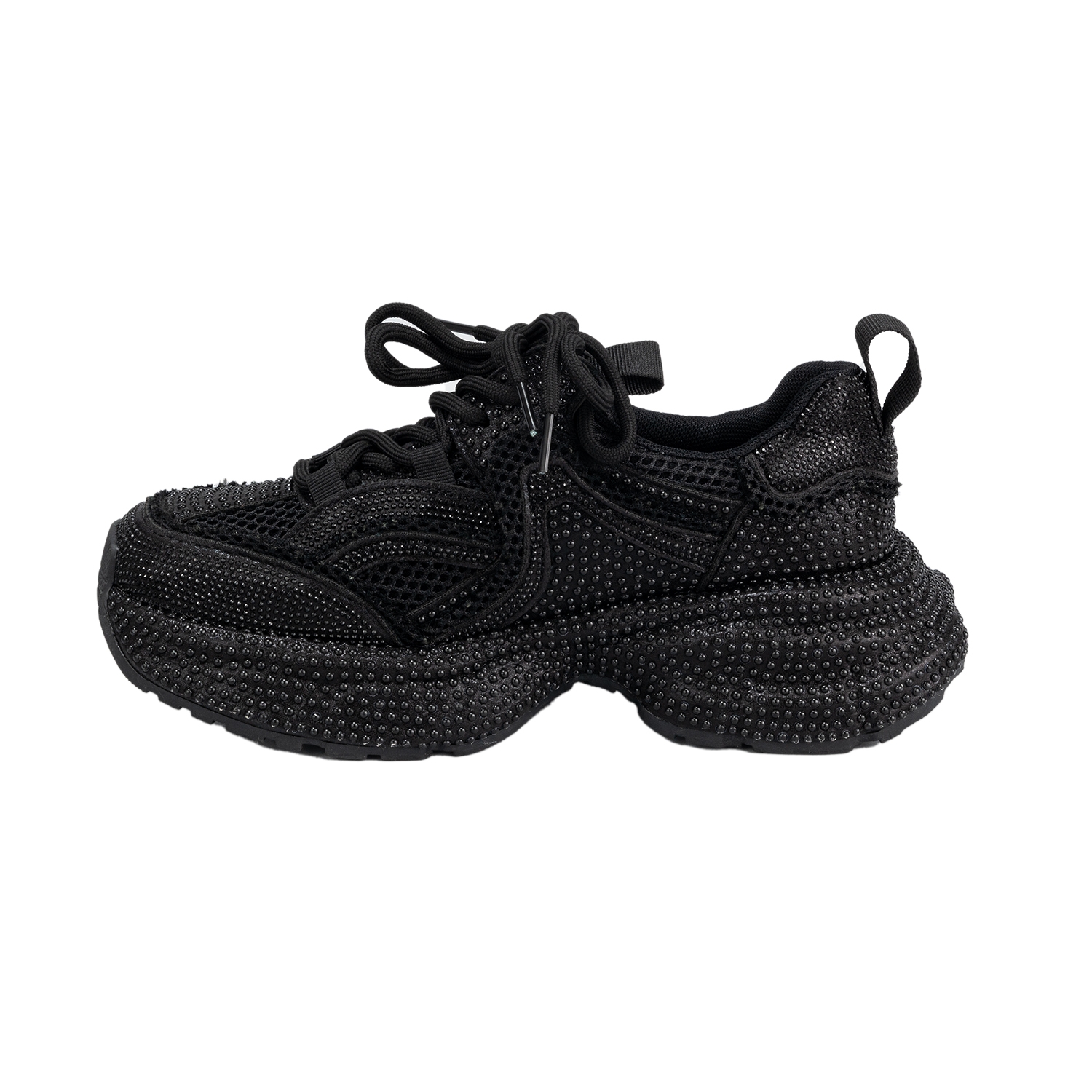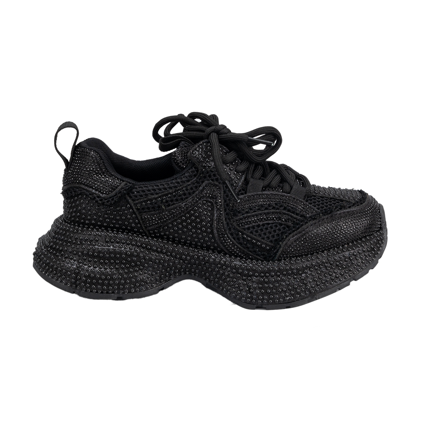 Дамски спортни обувки от еко кожа в черен цвят.