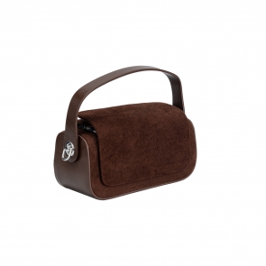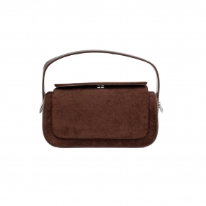 Дамска чанта от еко велур в тъмнокафяв цвят.