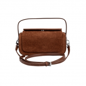 Дамска чанта от еко велур в светлокафяв цвят.