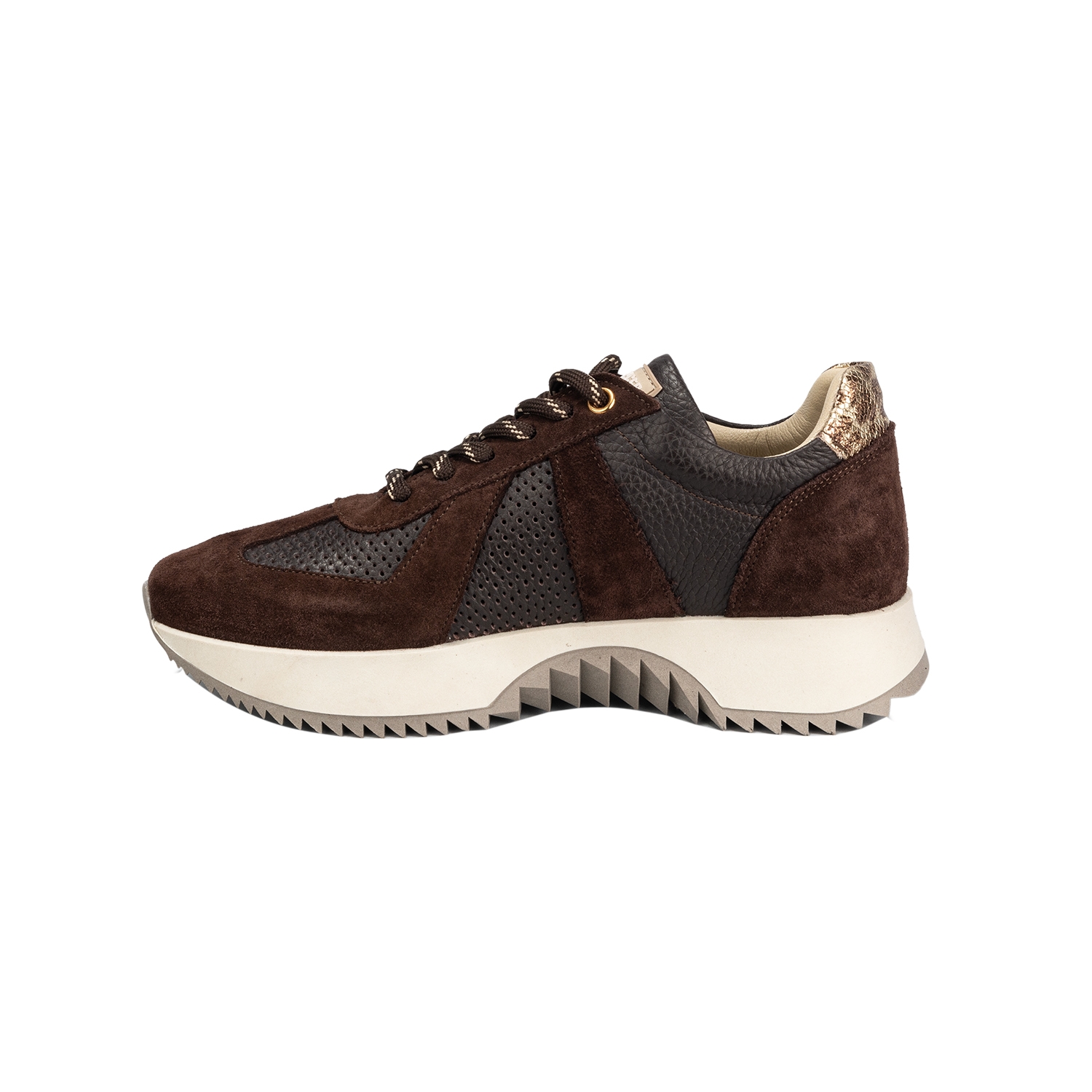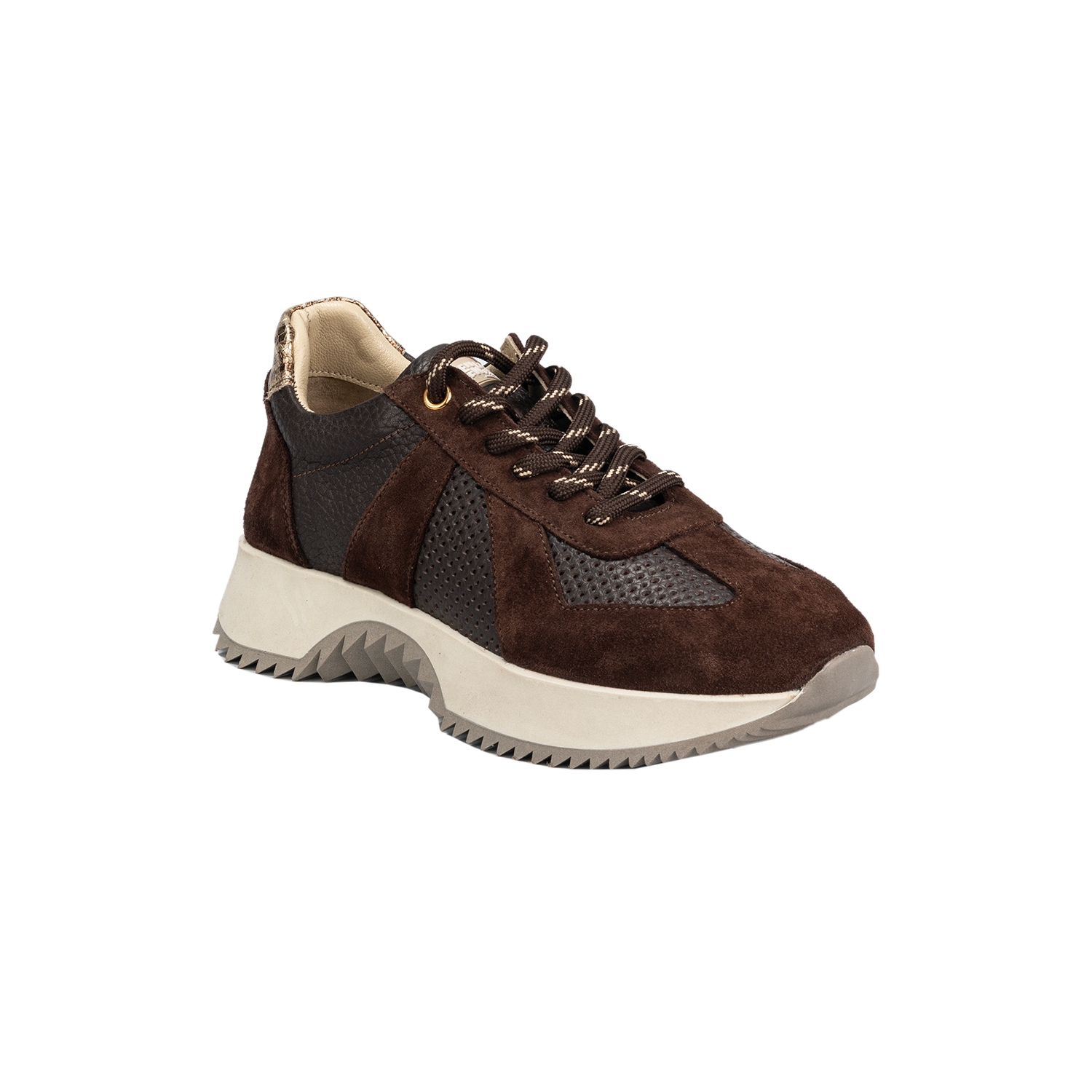Дамски спортни обувки от естествен велур и естествена кожа в кафяв цвят.