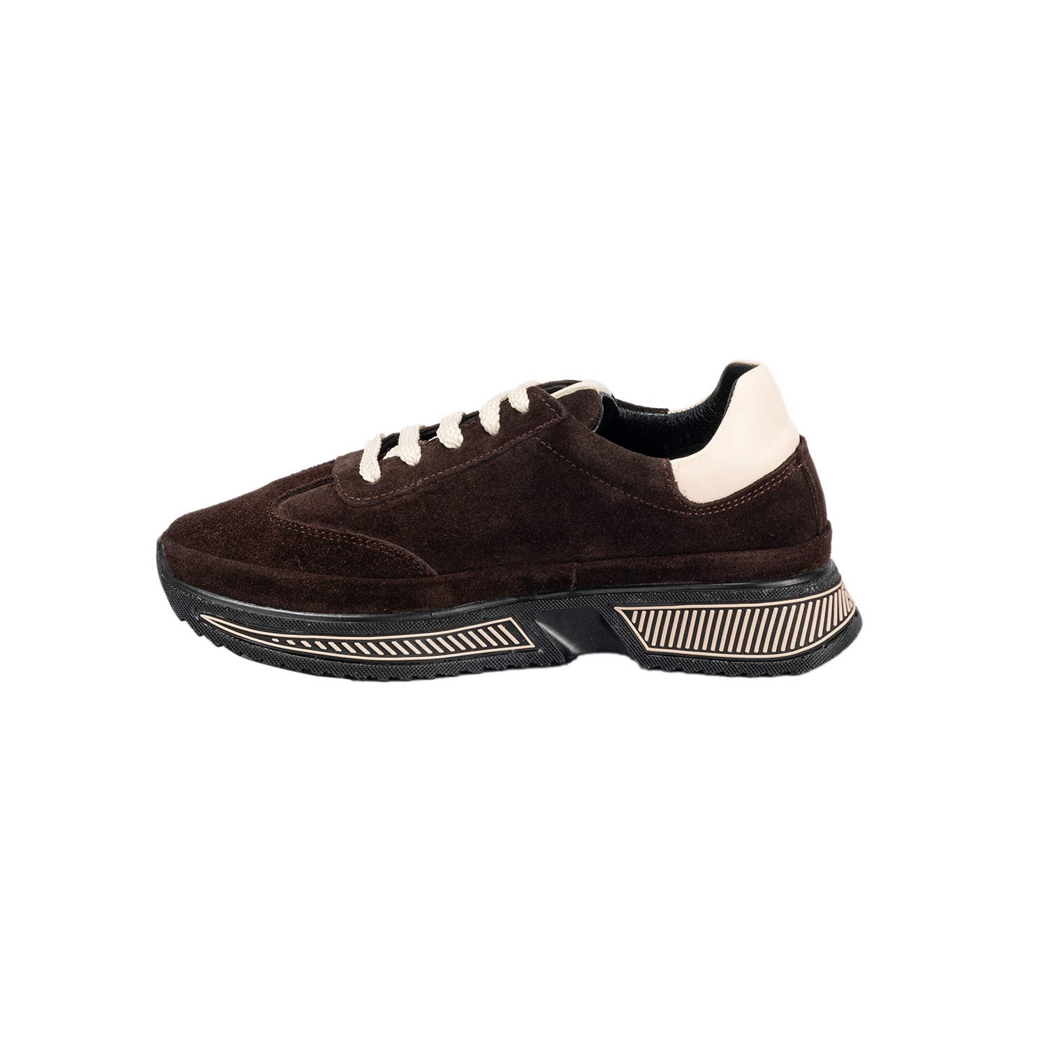 Дамски спортни обувки от естествен велур в кафяв цвят.