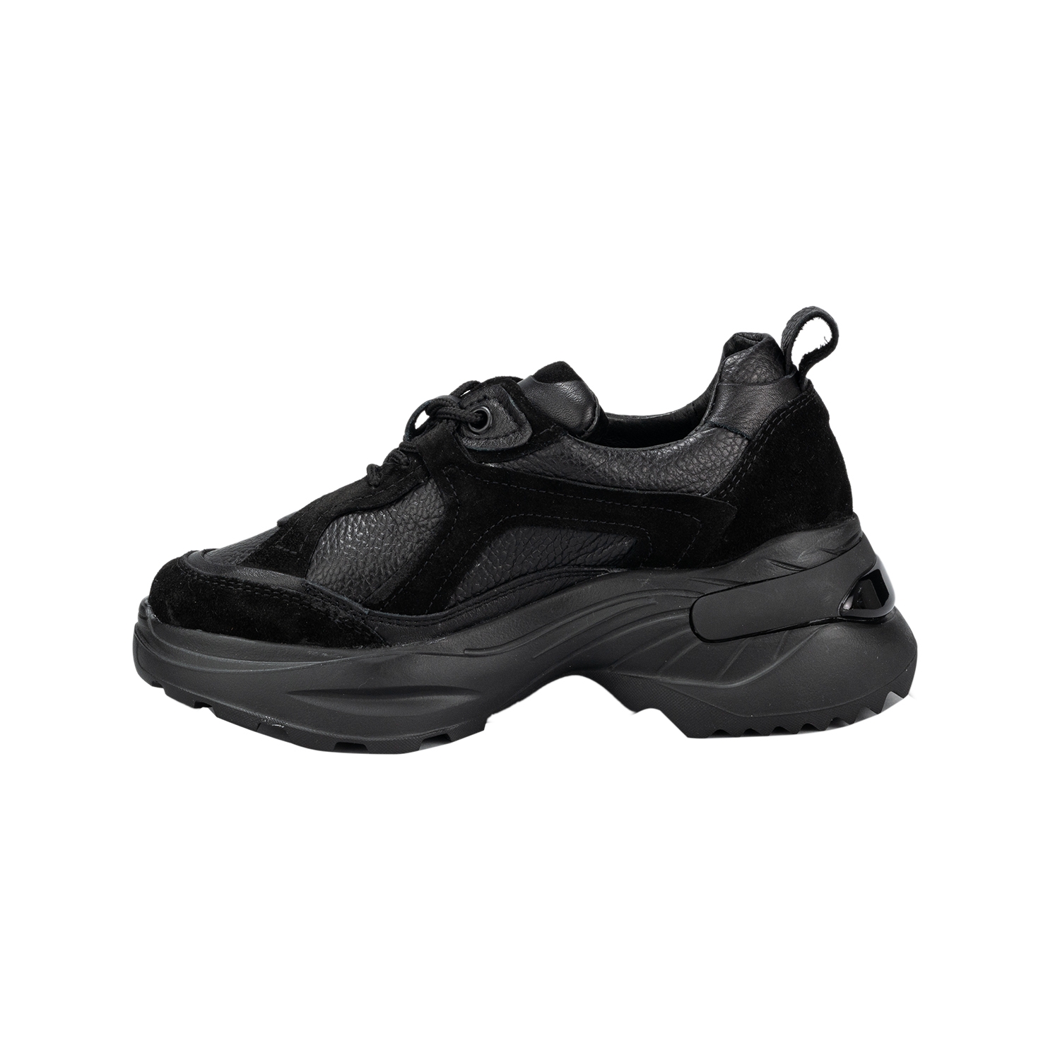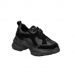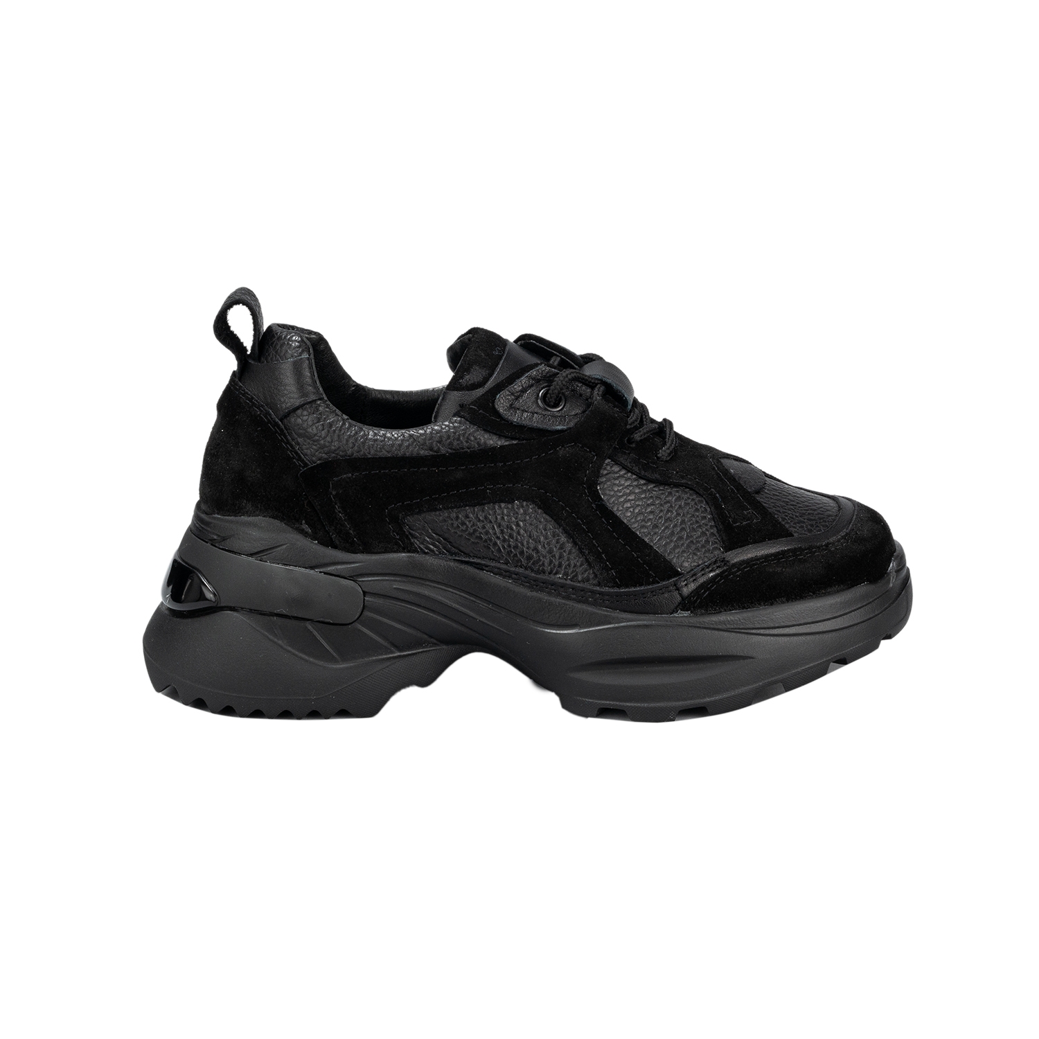 Дамски спортни обувки от естествена кожа и естествен велур в черен цвят.