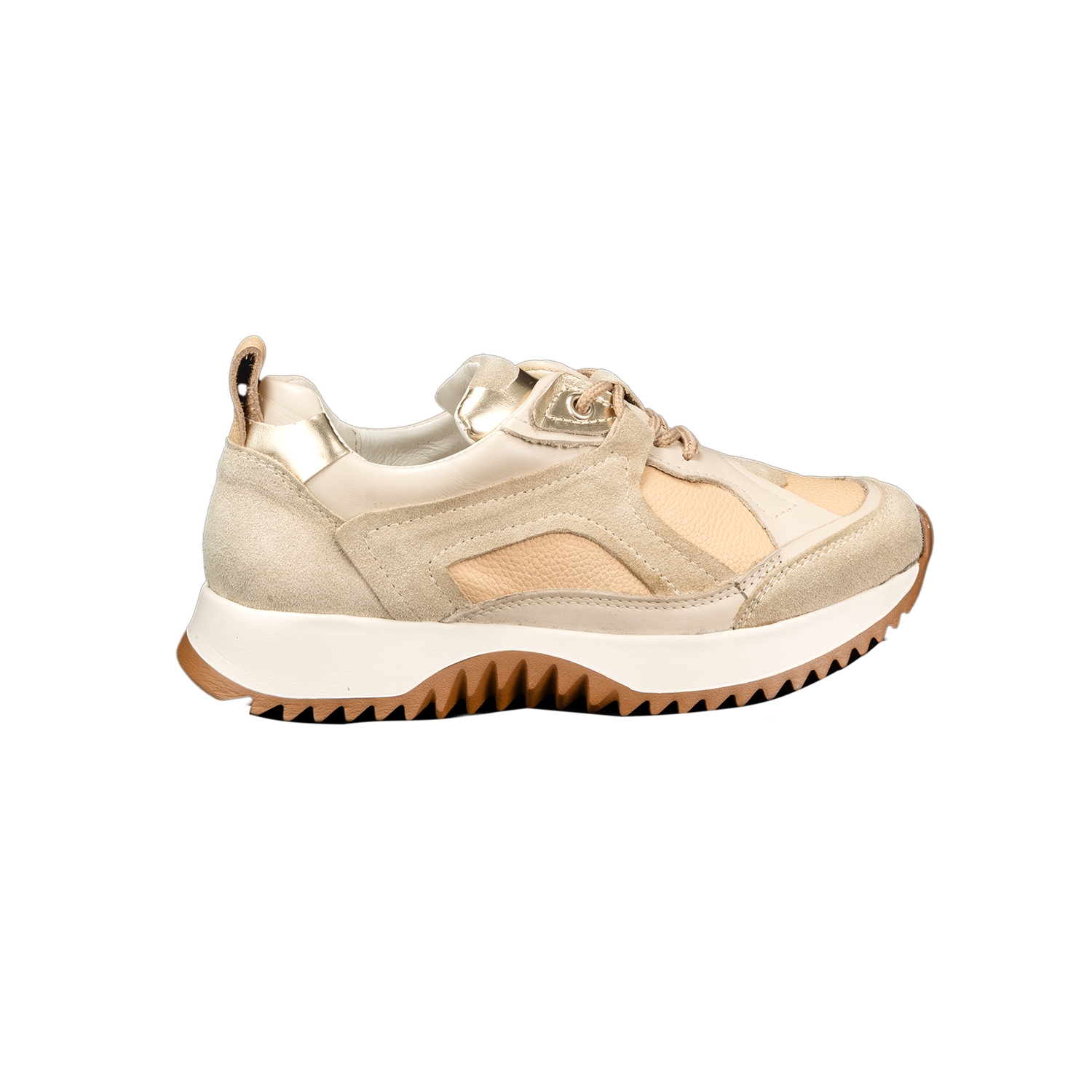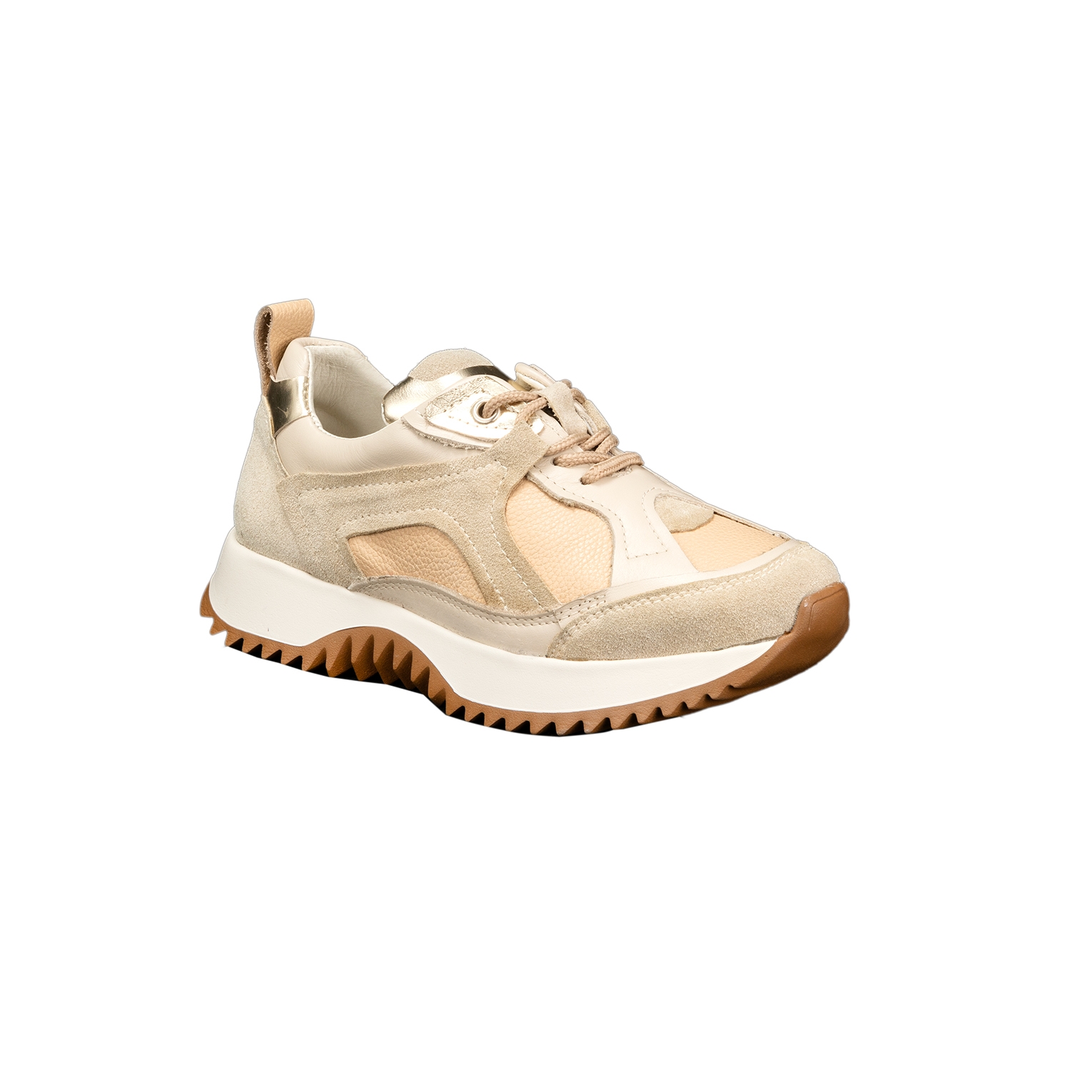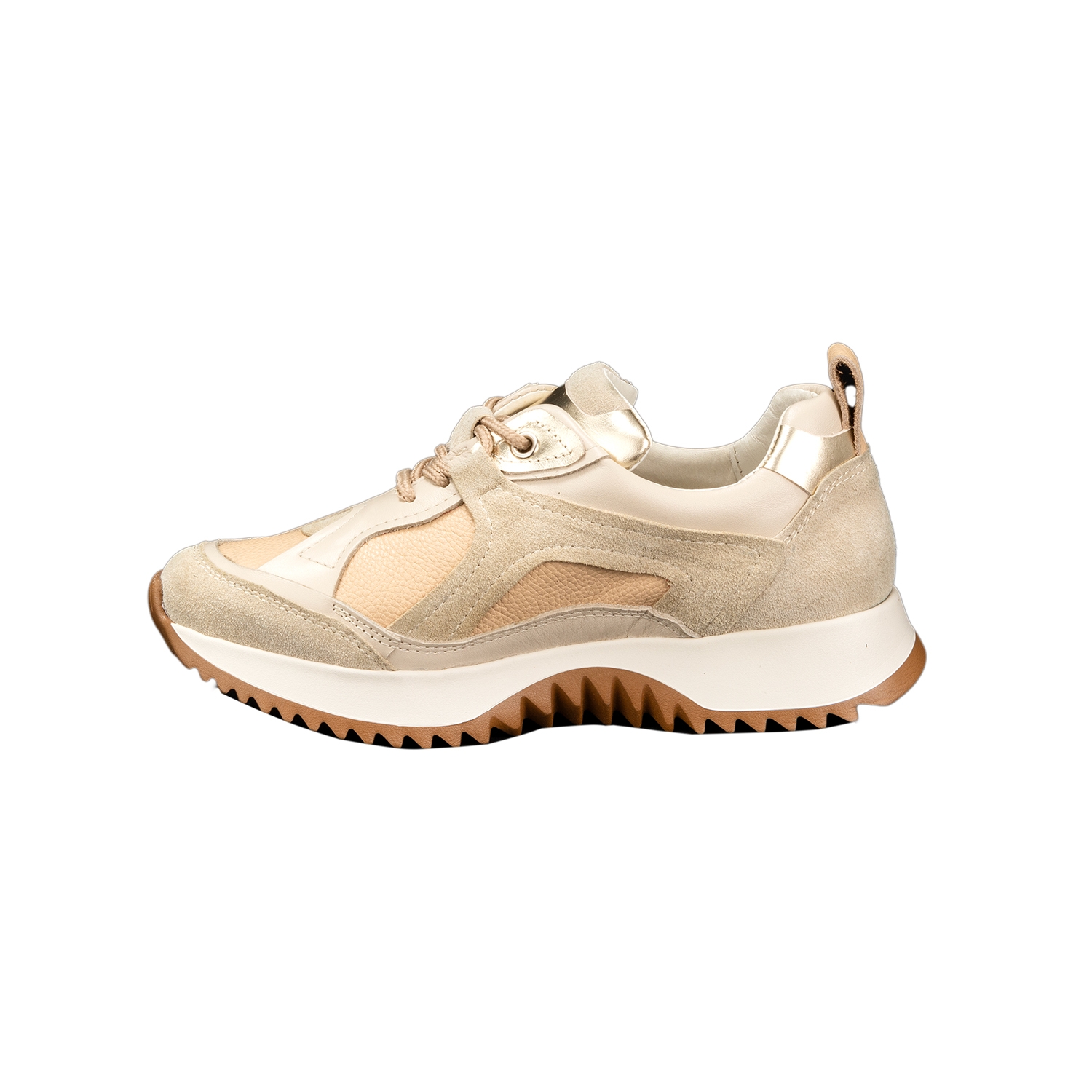 Дамски спортни обувки от естествена кожа и естествен велур в бежов цвят.