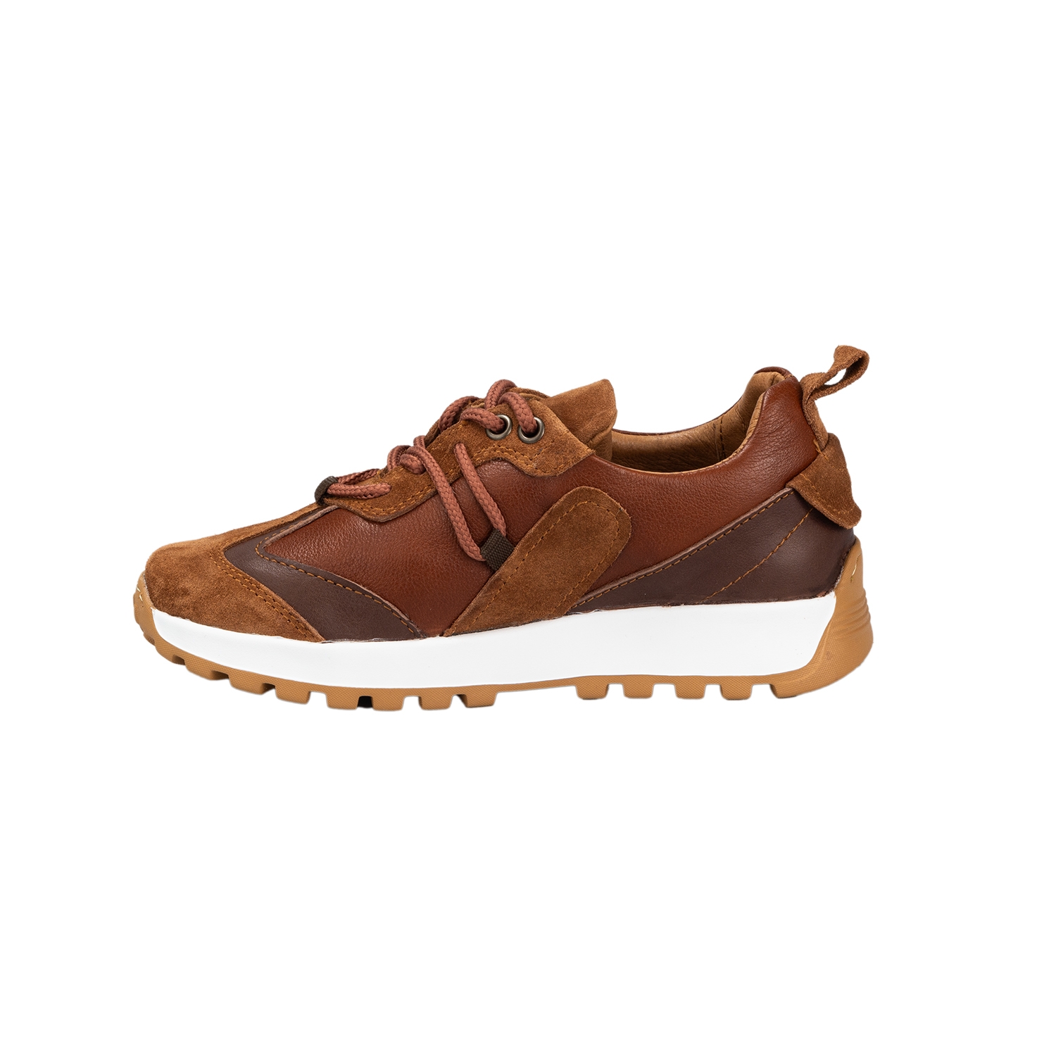 Дамски спортни обувки от естествена кожа и естествен велур в кафяв цвят.