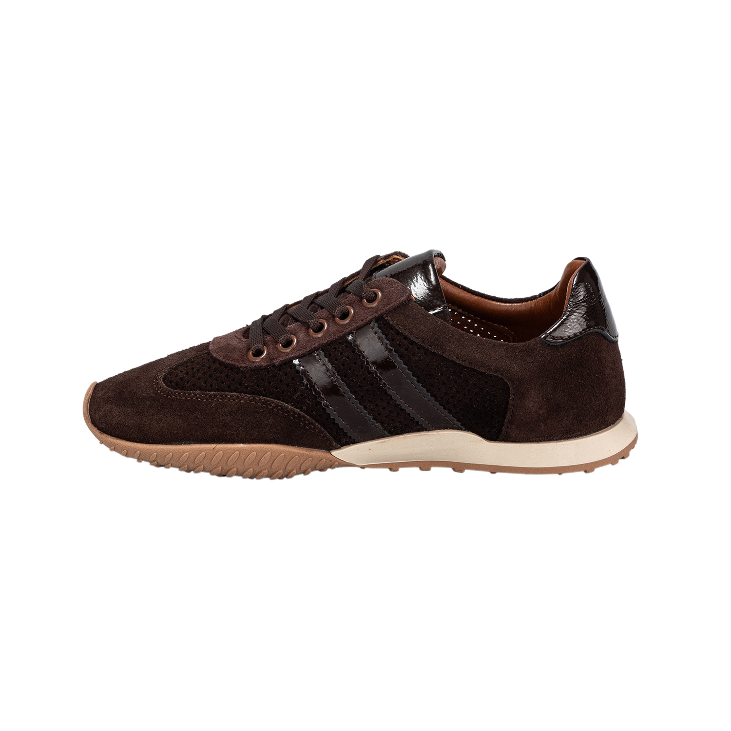 Дамски спортни обувки от естествен велур в тъмнокафяв цвят.