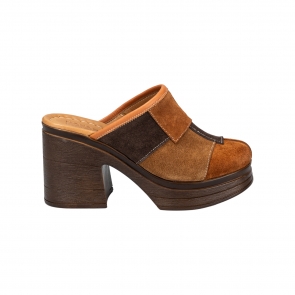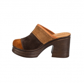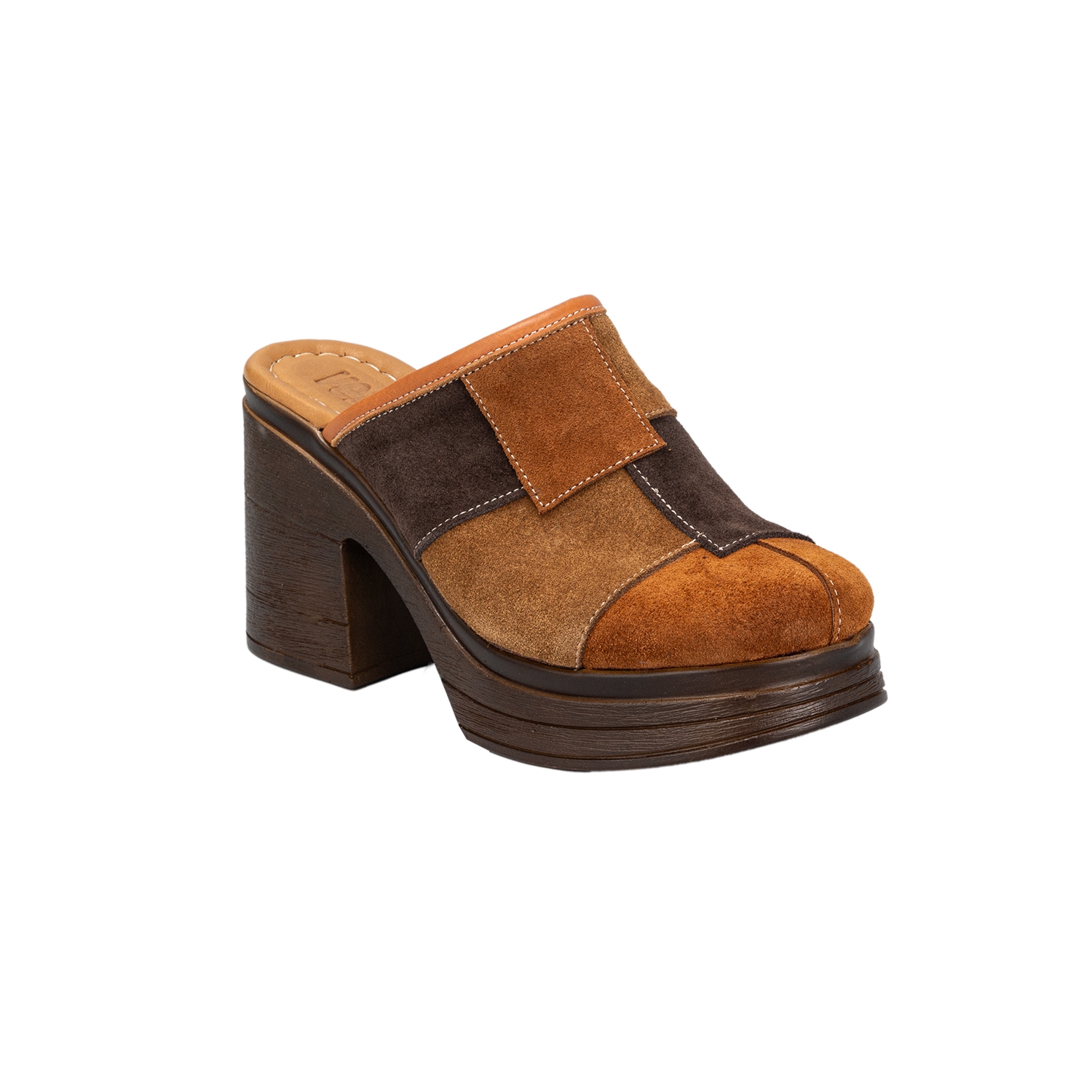 Дамски ежедневни чехли от естествен велур в кафяв цвят.