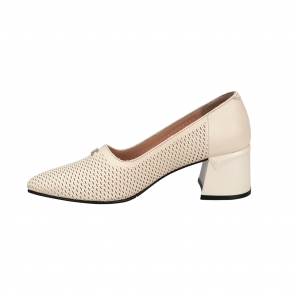 Дамски елегантни обувки от естествена кожа в светлобежов цвят.